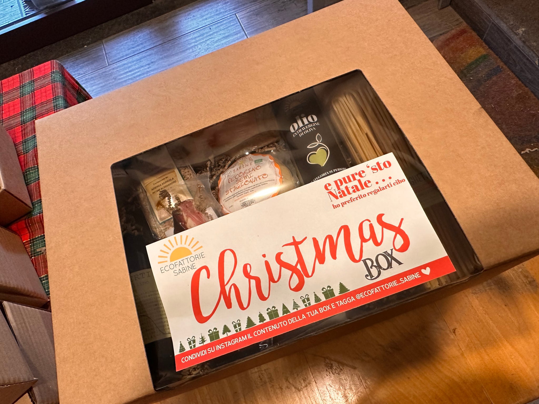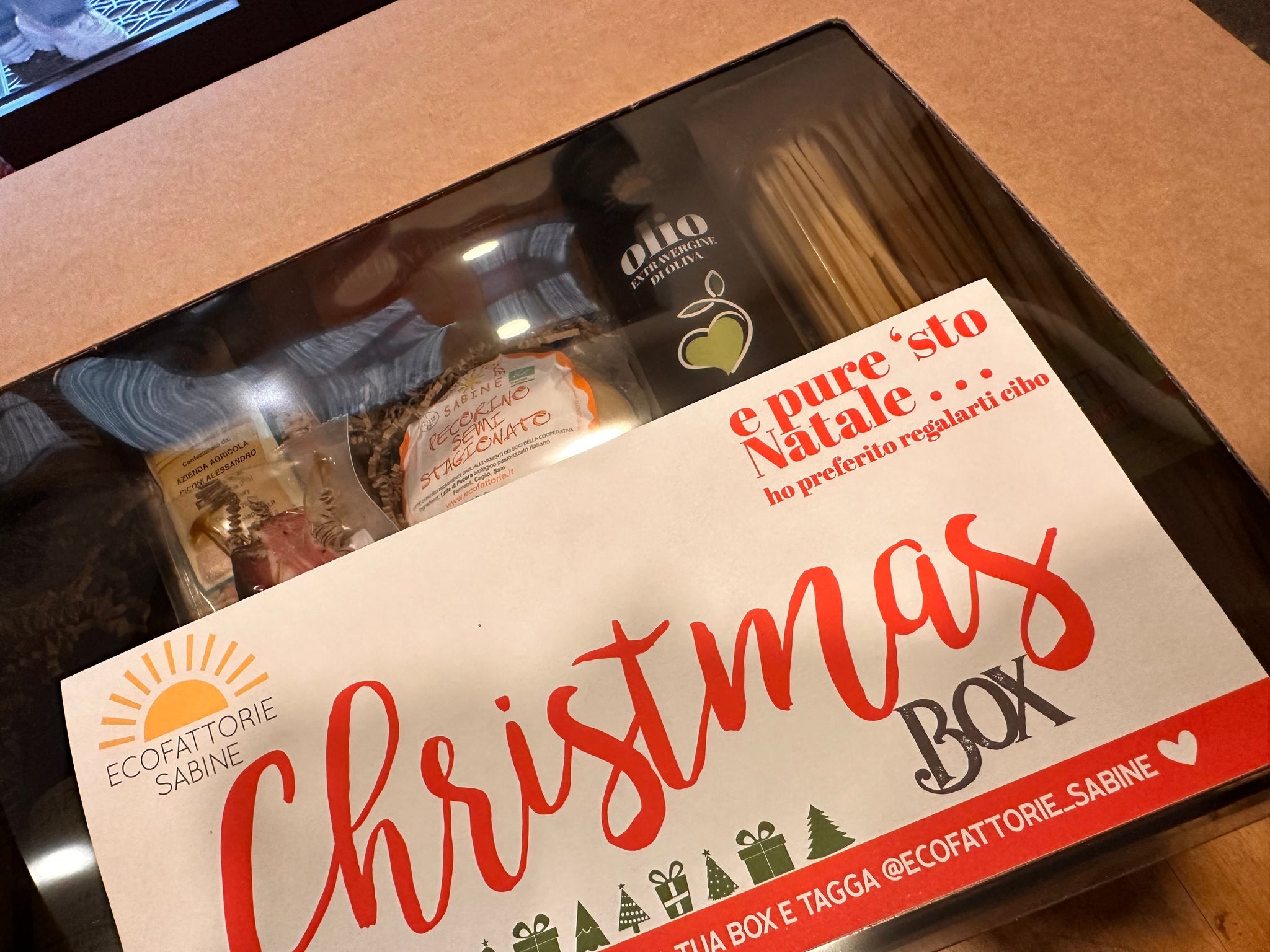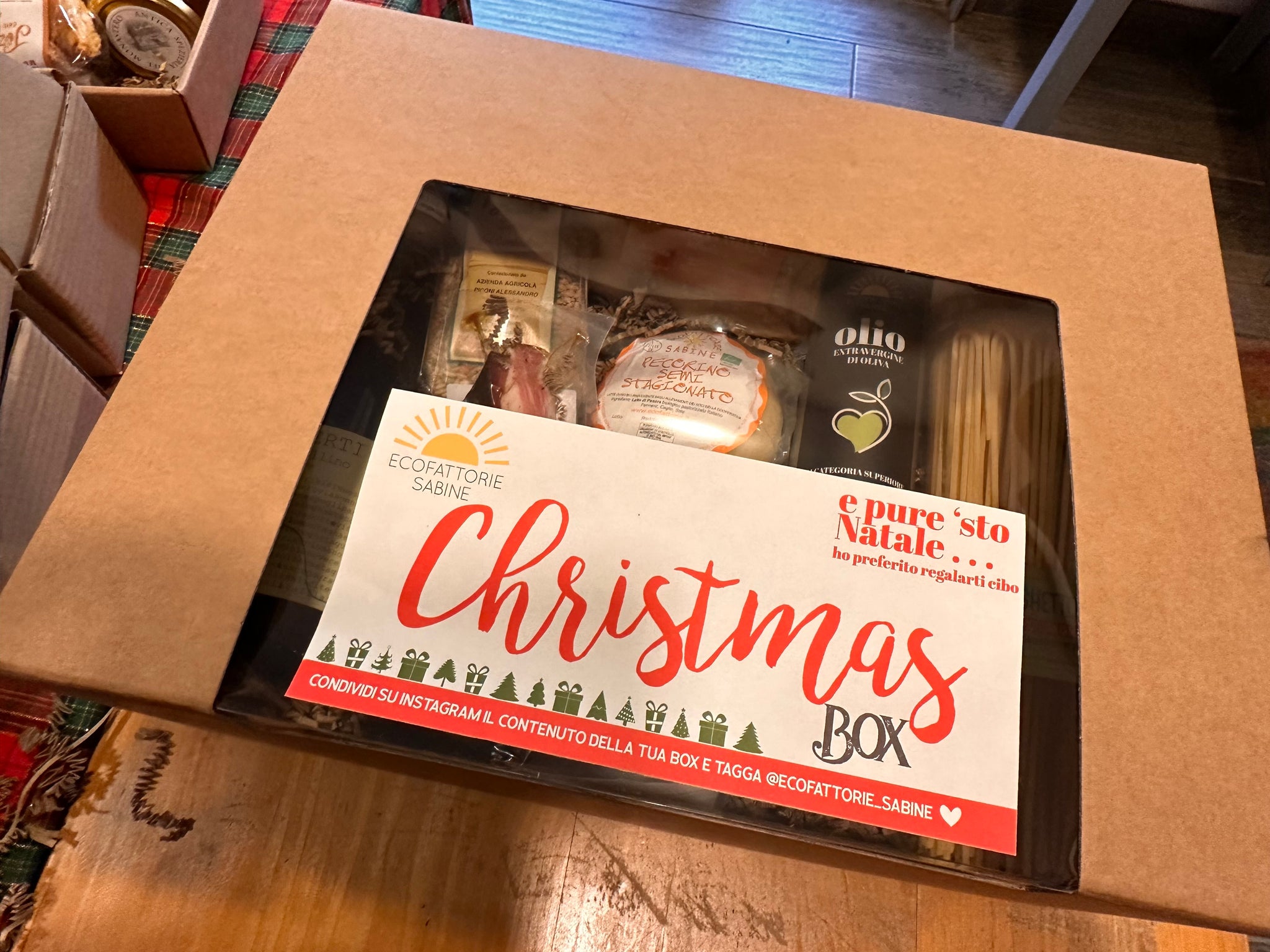 Contiene : 1 bottiglia di vino biologico, una bottiglia di olio extravergine di oliva da 500ml, 1 crema spalmabile all’olio di oliva, 1 pecorino semistagionato bio 500gr, 1 spicchio di pecorino stagionato 400gr, 1 pacco di pasta artigianale, 1 confezione di biscotti fatti in casa, 1 barattolo di pomodori datterini, 1 trancio di guanciale, 1 confezione di legumi artigianali e 1 crema di carciofi.